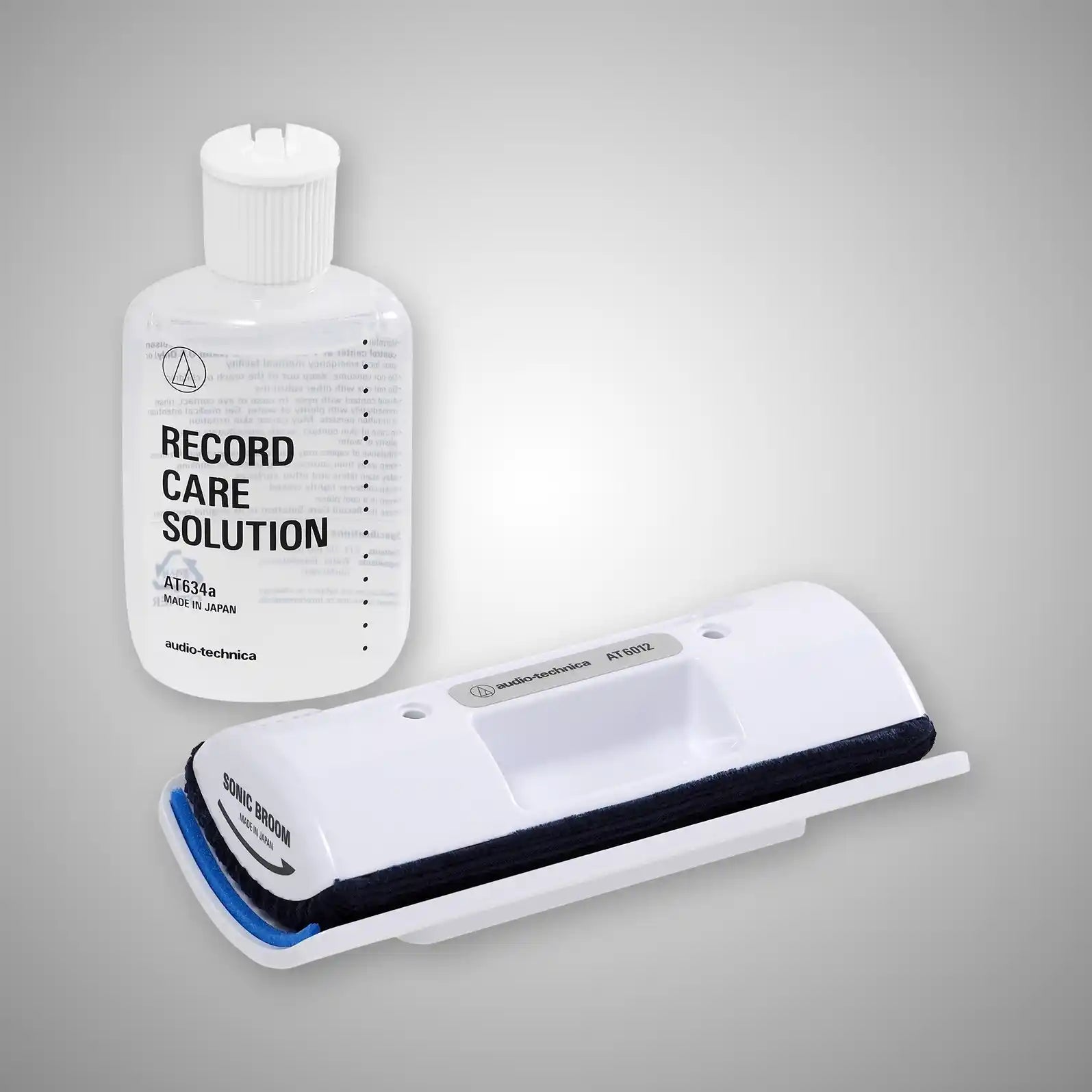 The AT6012 includes a record care solution and velvet brush pad to remove microdust and other contaminats, dissolve fingerprints and eliminate static electricity.